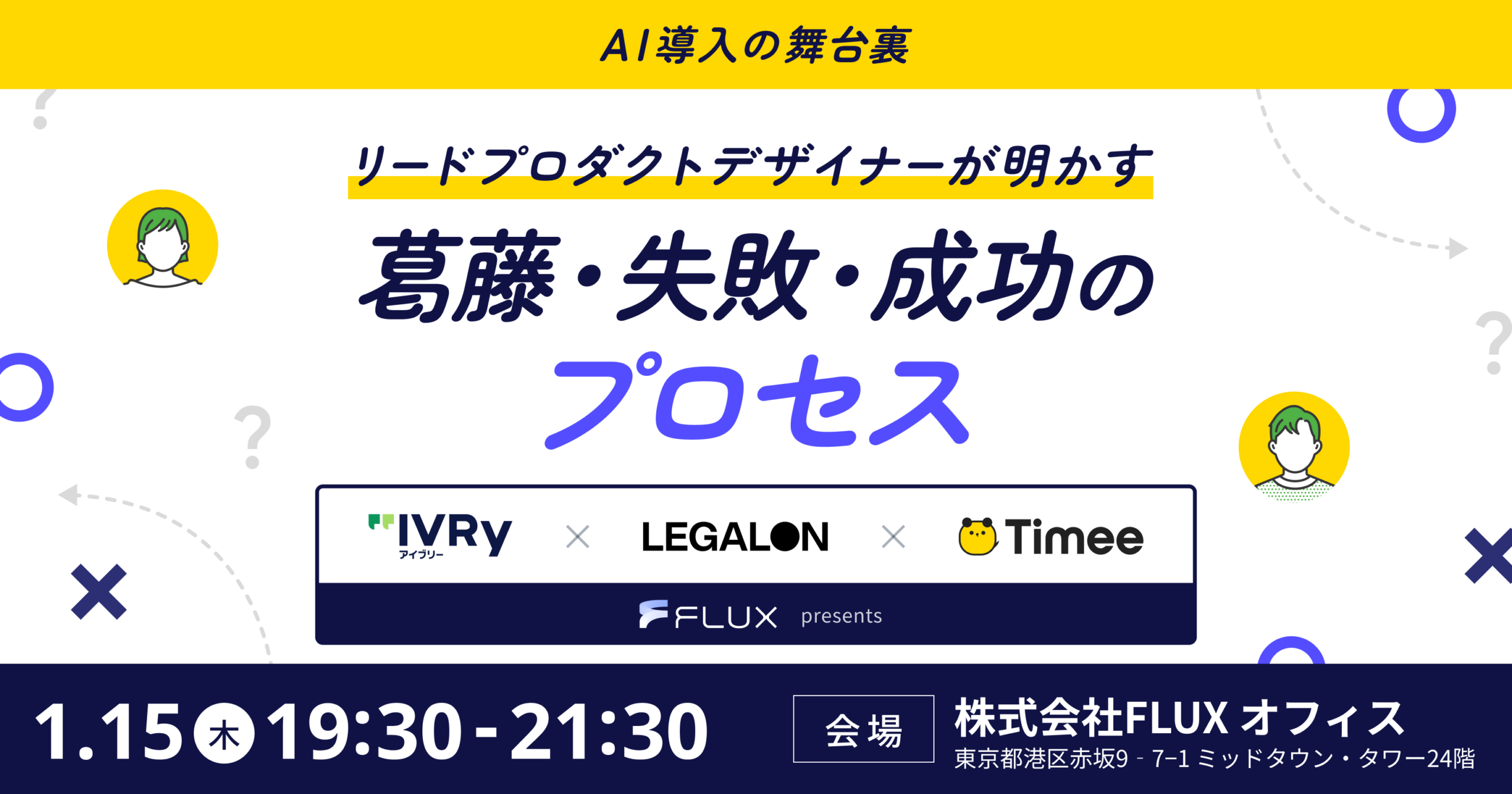 ※1 IVRy・タイミー・LegalOnより「AI×デザイン」「AI時代のプロダクトデザイナーのキャリアや働き方」「成功・失敗事例」を共有させていただく予定です