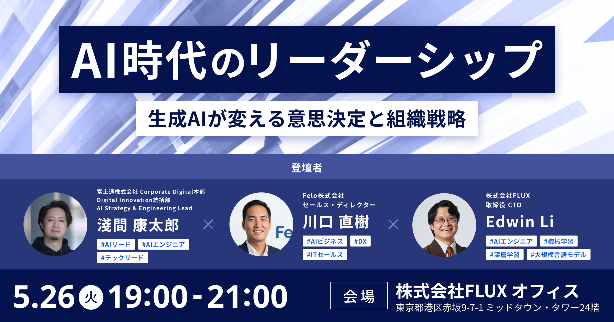 本イベントでは、FLUXとFELO AIが培ってきた実践知を体系化し、その核心を紐解きます。
